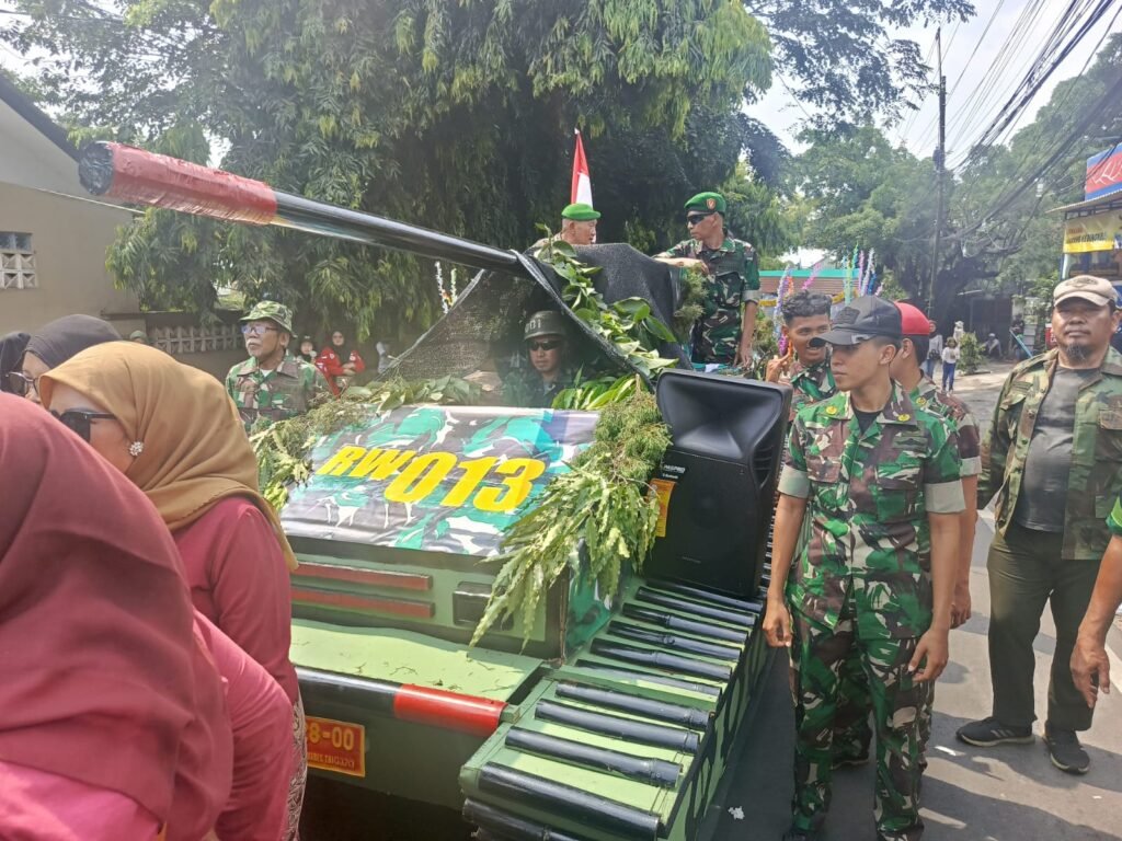 Salah satu penampilan yang menarik perhatian datang dari RW 013 Perumahan Kodam, yang menghadirkan atraksi unik berupa replika tank baja lengkap dengan personel pengawalnya. Selain itu, berbagai pertunjukan seni tradisional turut meramaikan acara, seperti pencak silat, lenong, serta tarian tradisional lainnya.